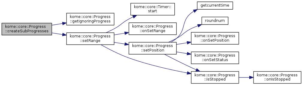 Implemented in kome::core::SubProgress, kome::core::IgnoringProgress, and kome::core::DisplayProgress.
